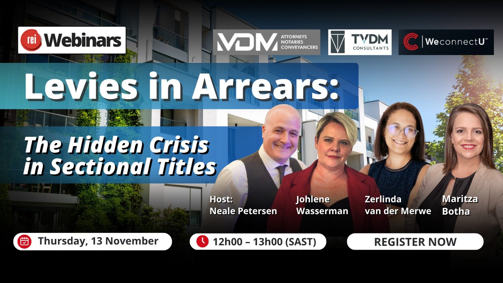 This webinar Willie Roos from Stratafin; Zerlinda Van Der Merwe from TVDM Consultants and Vita Wilkens from The University of Pretoria, provide us with methods and suggestions on how to professionalise the community schemes' management industry.